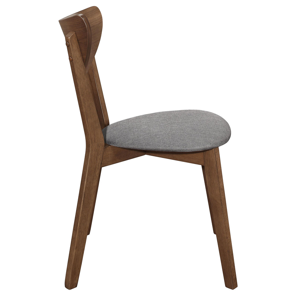 • Side chair features an "X" platform for the upholstered seat and a contoured half moon chair back for added sculptural appeal