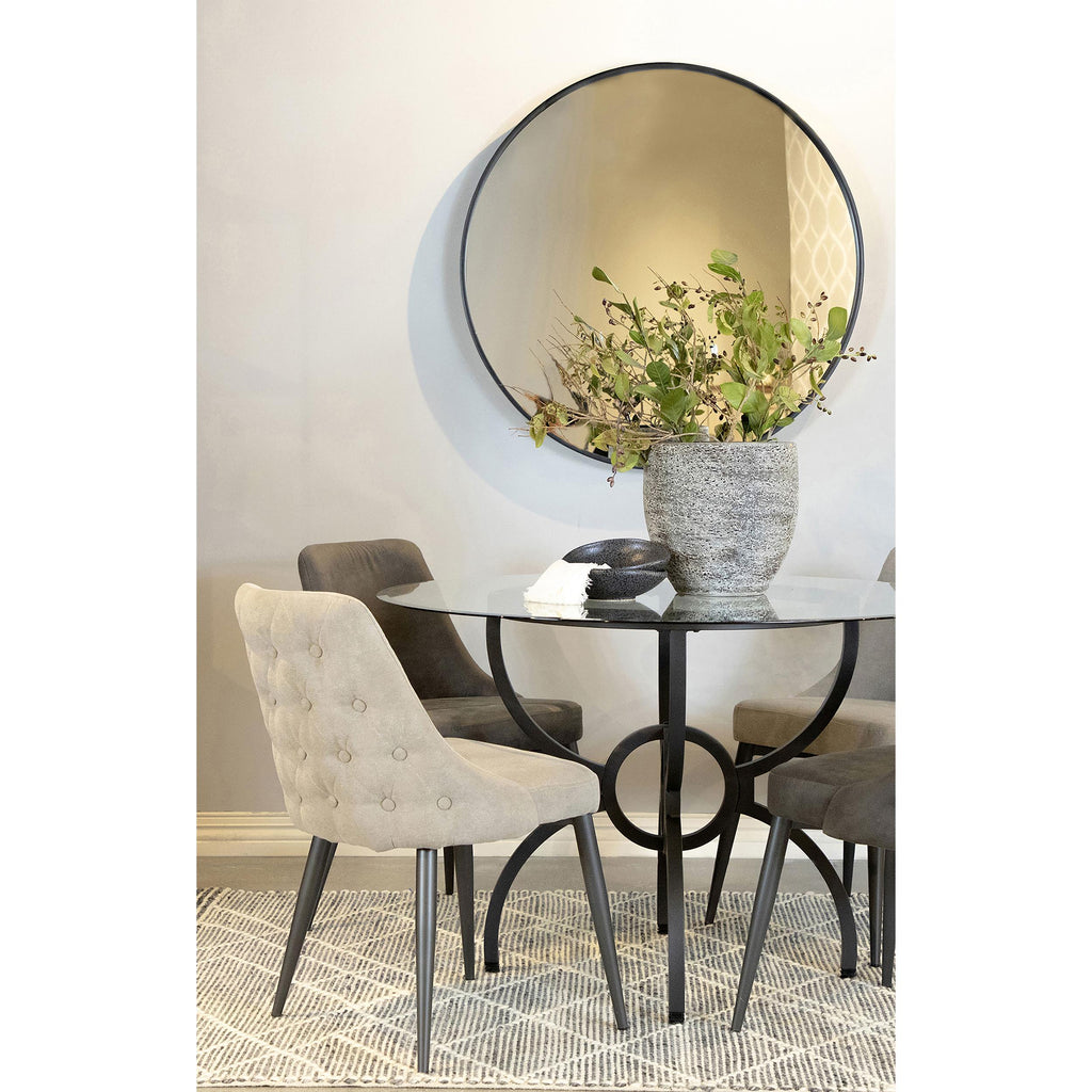 • Upholstered curved back dining chairs with unique tufting in the back offered in cream fabric