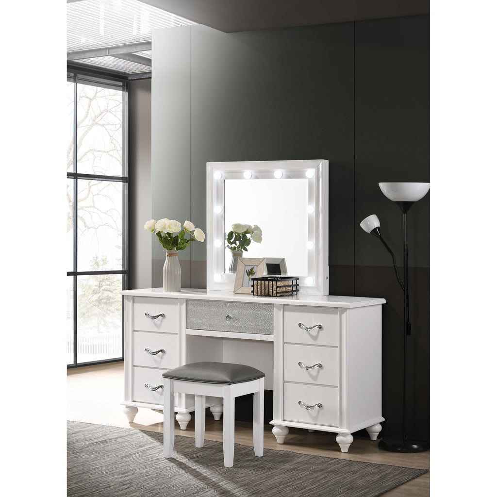 • Glittering, metallic vanity paired with a Hollywood style mirror