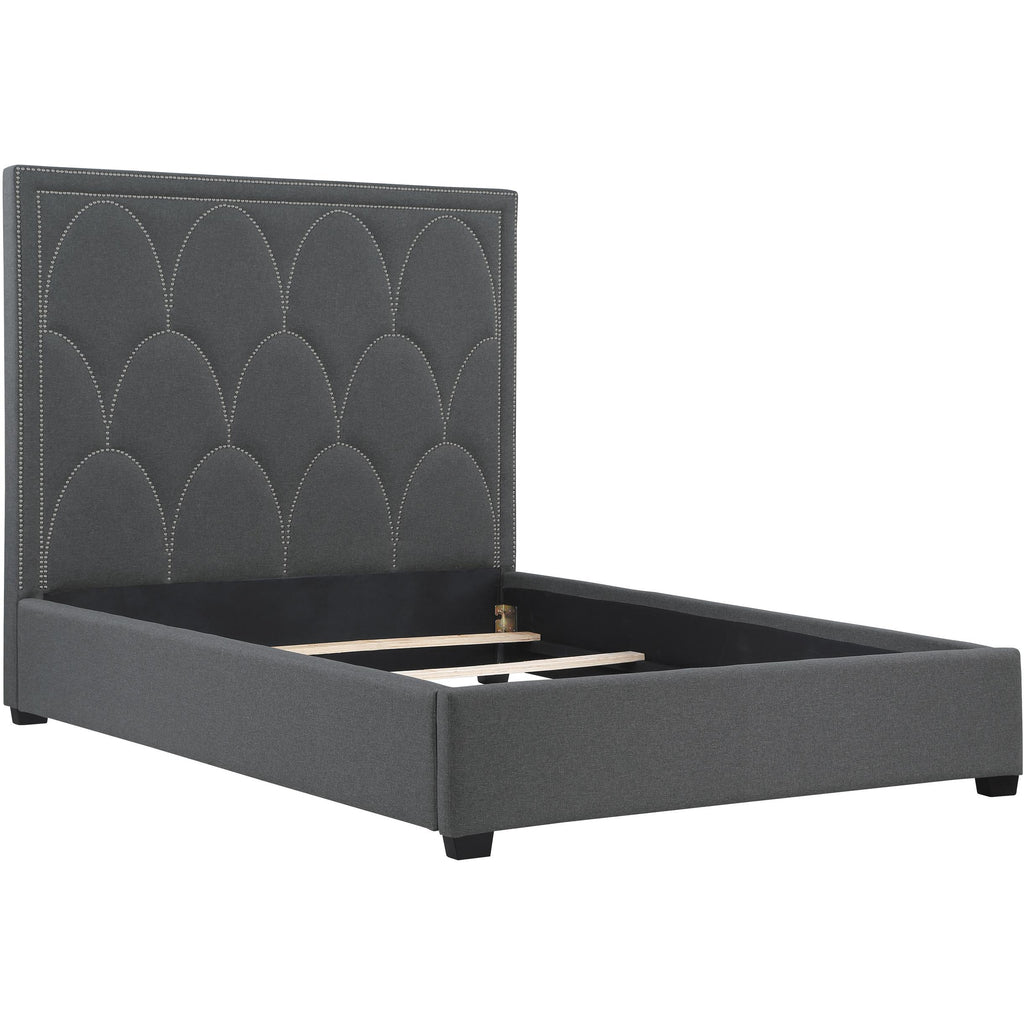 • Individually hand driven nailheads outline the scalloped patterned headboard