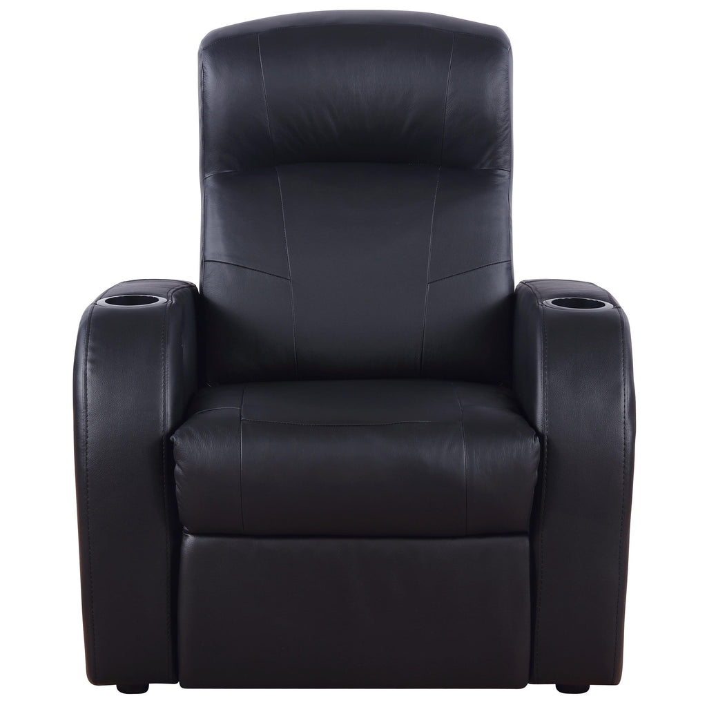 • Home theater collection upholstered in black top grain leather everywhere the body touches