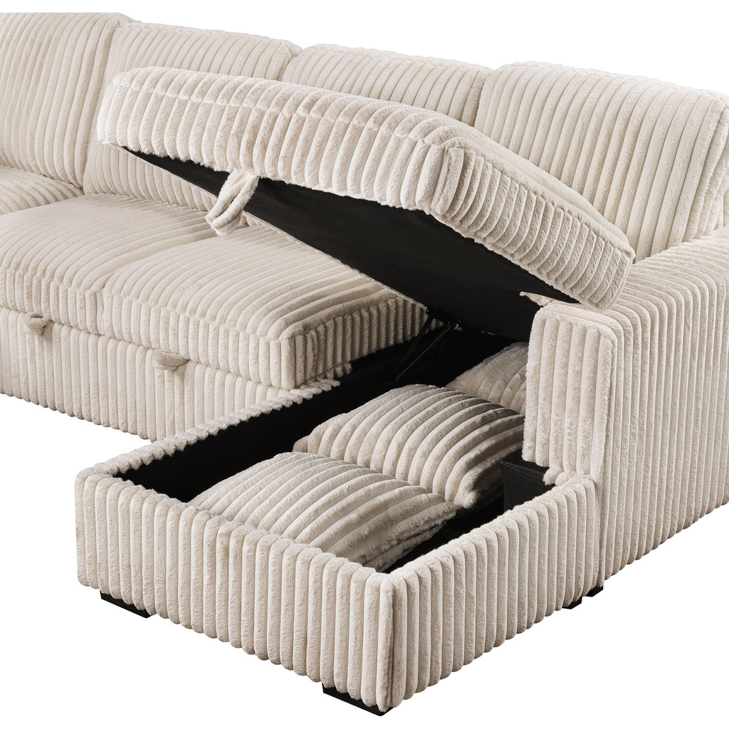 • Hidden storage chaise keeps essentials organized and out of sight