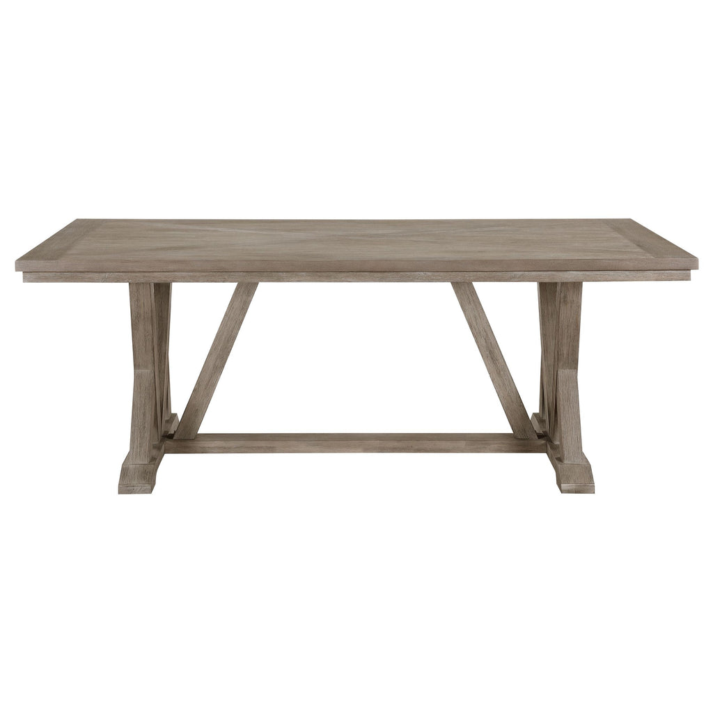 • Coastal grey wood grain finish is light and on-trend, perfect for casual family dining spaces
