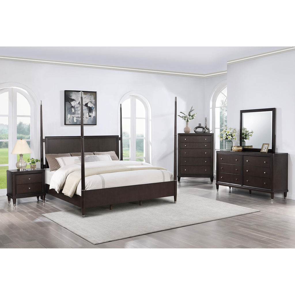 • Deep brown wood finish is rich and warm, complementing in a variety of spaces