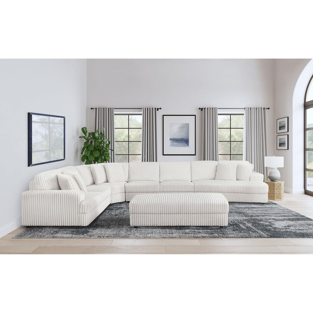 • Versatile storage ottoman with luxurious ivory wide corduroy upholstery