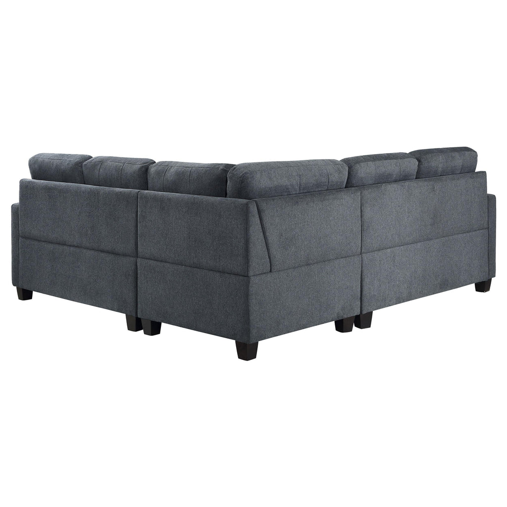 Reversible back cushions offer foam padding and decorative tufting