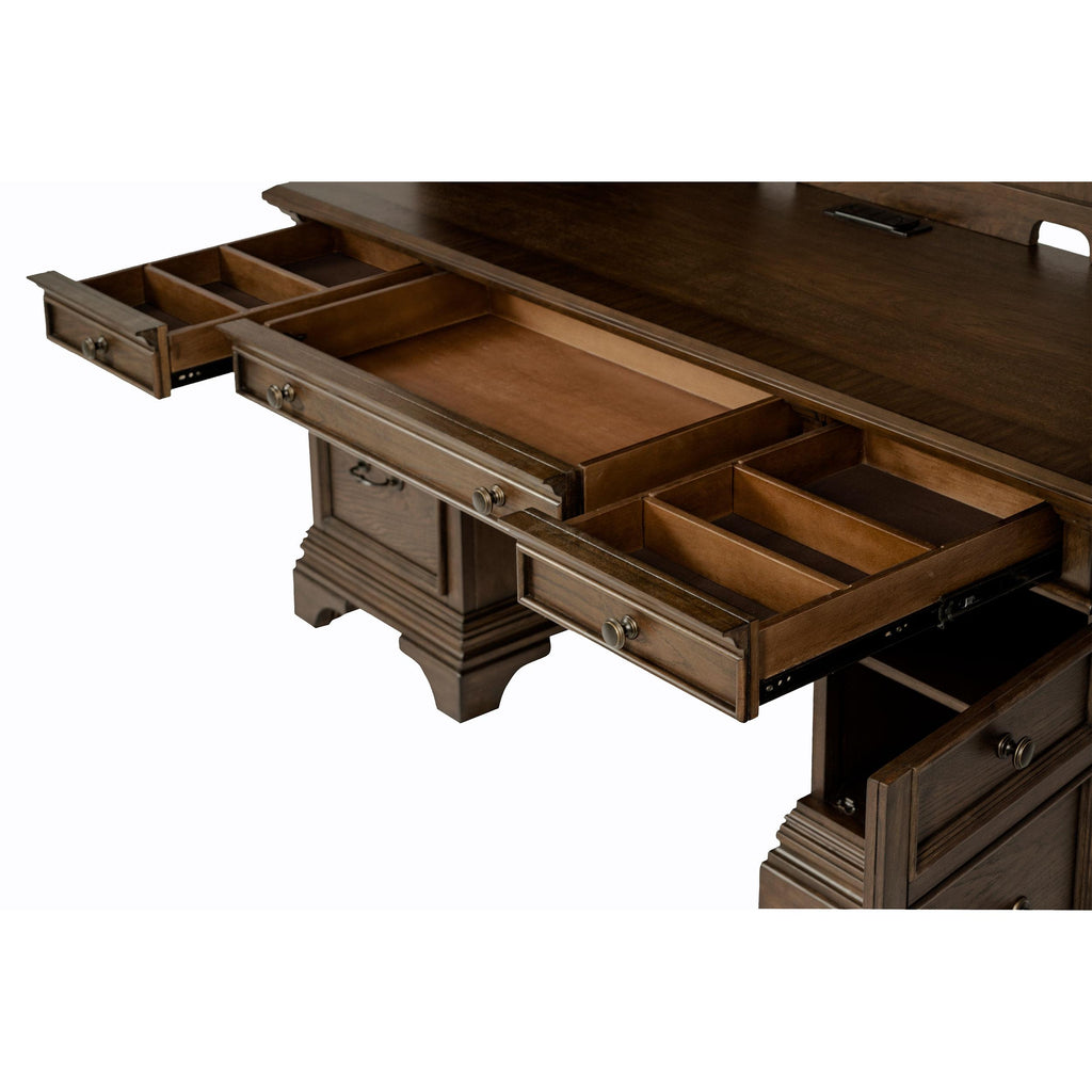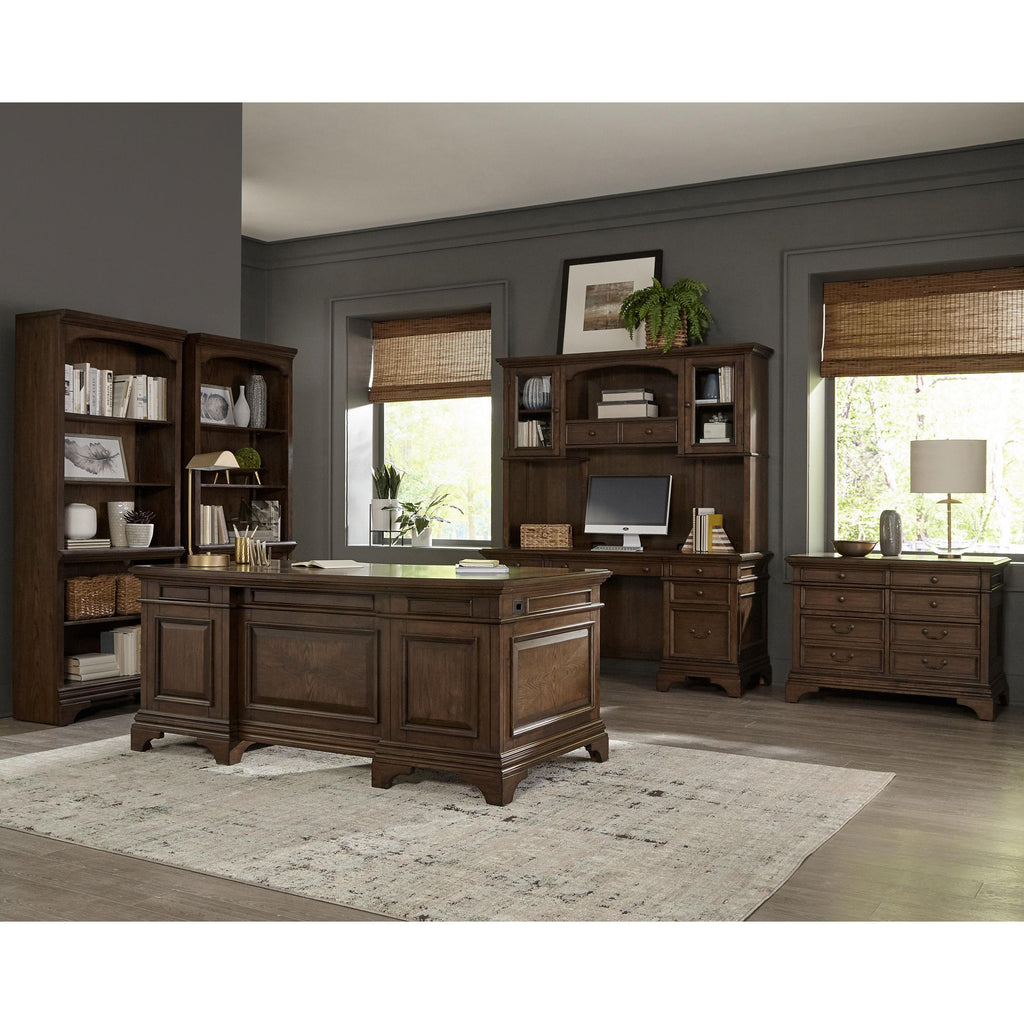• Executive home office collection finished in burnished oak