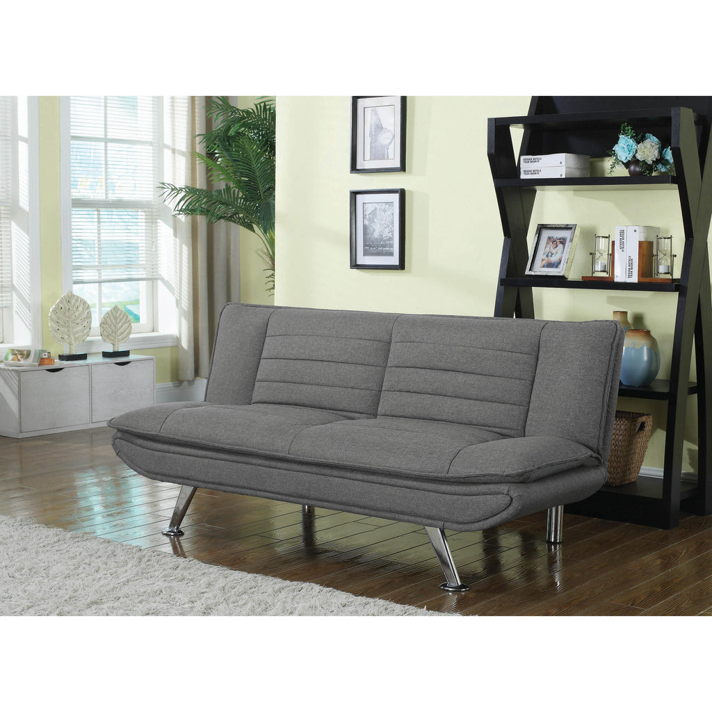 • Contemporary sofa bed upholstered in grey fabric