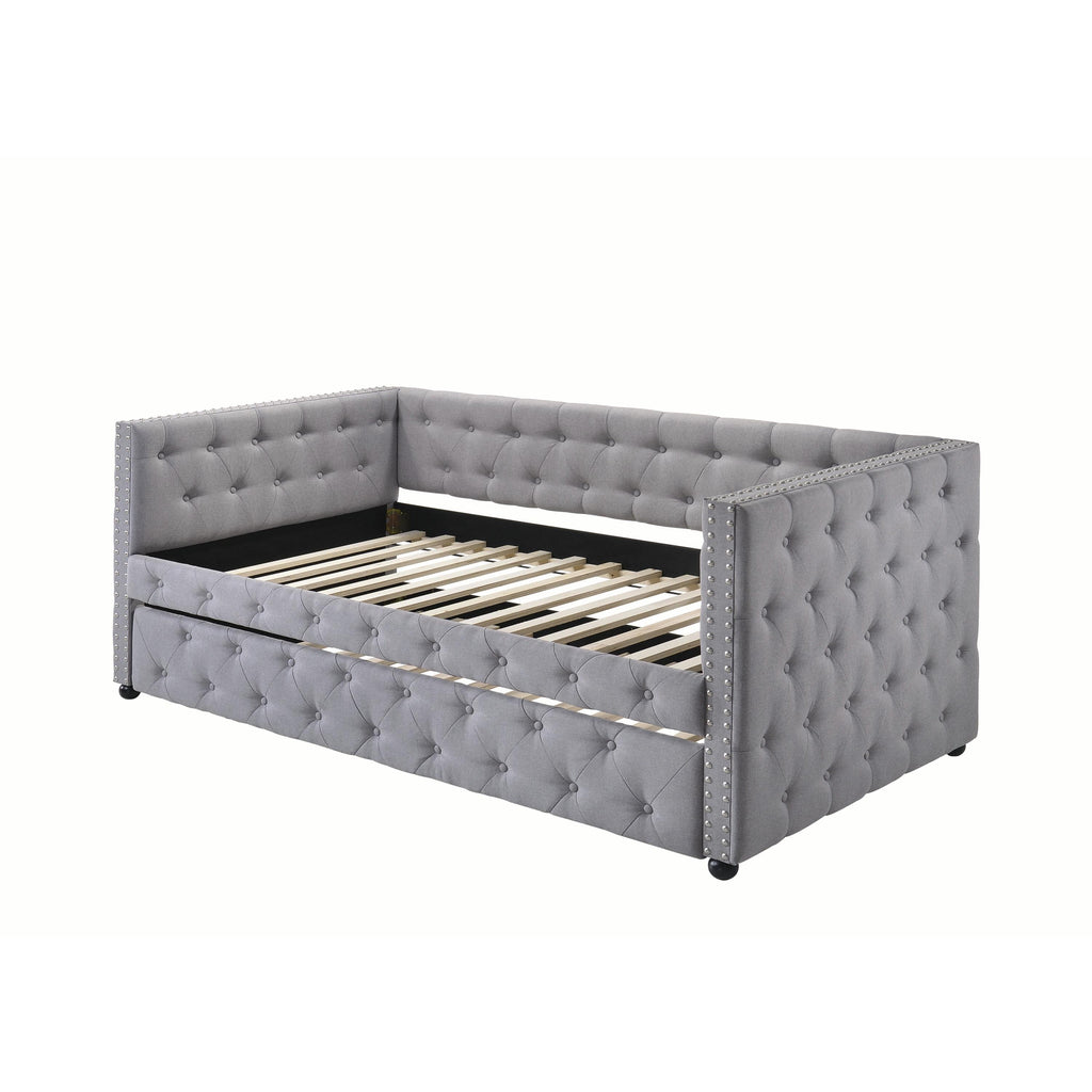 • Double row of hand-driven nickel nailhead trim adds a glamorous touch