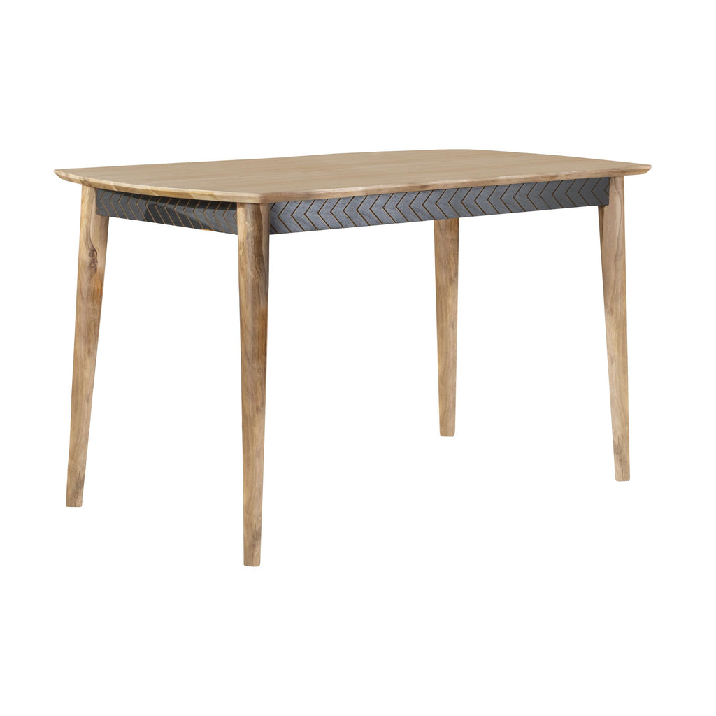 A perfect addition to contemporary homes, this Partridge 5-piece counter height dining set adds warmth to a dining area with... A perfect addition to contemporary homes, this Partridge 5-piece counter height dining set adds warmth to a dining area with its solid natural Sheesha wood frame. Along the apron of the table is an arrow-inspired graphical design in a contrasting black hue. An industrial-inspired counter height stool is wrapped in leather upholstery across the contoured backrest and seat offering ultimate comfort and stability. This set includes a counter height dining table and 4 black counter height stools. View more