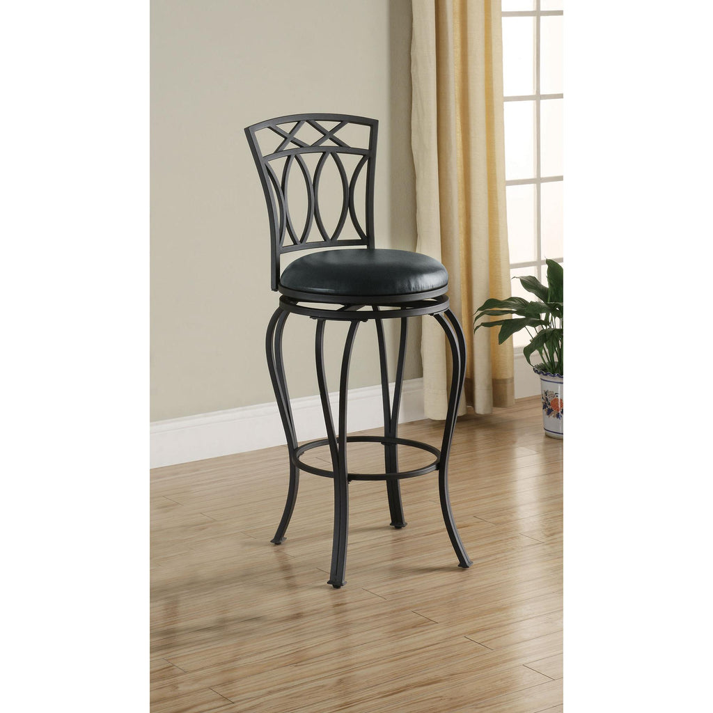 • Introduce a stylish presence with this metal barstool featuring a swivel seat, curvy legs, and a built-in footrest