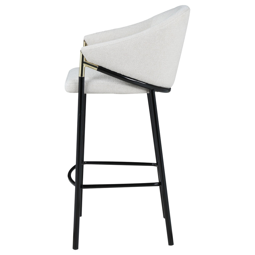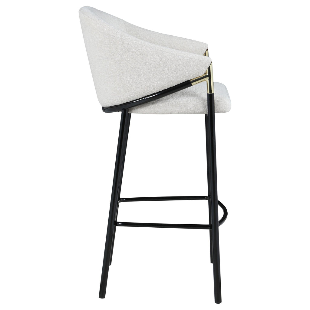 • Cushioned seat wrapped in linen-like fabric for soft touch and comfort; sloped arm rests and curved high back for relaxation