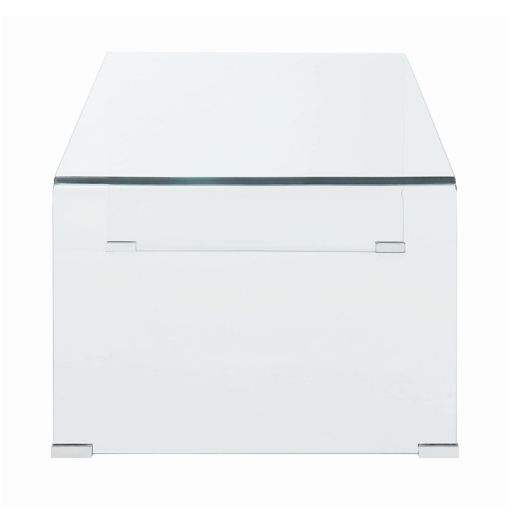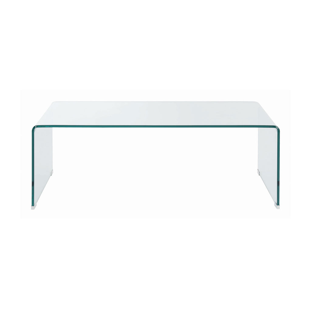 • Clear coffee table showcasing a sleek and contemporary minimalist design