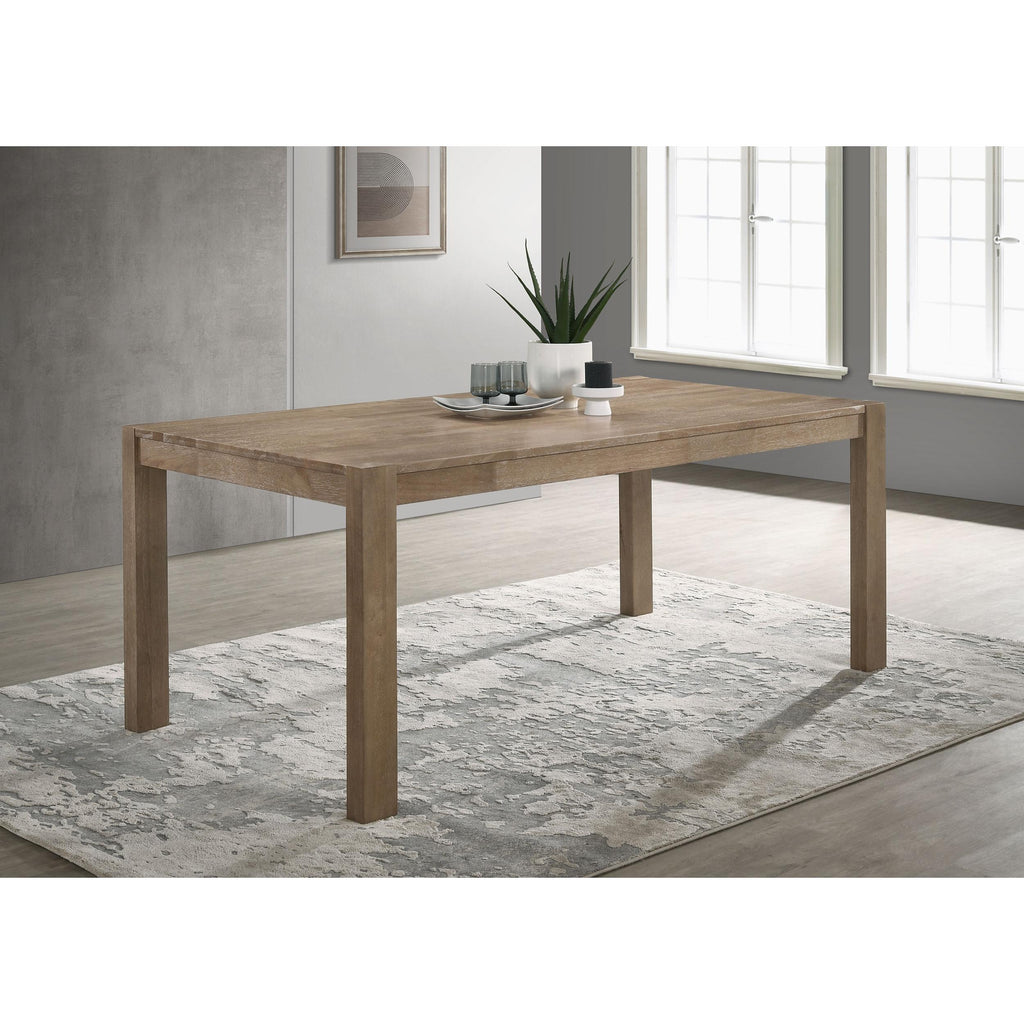 • Simplicity sets the tone for a rustic casual rectangular dining table with a versatile look and feel