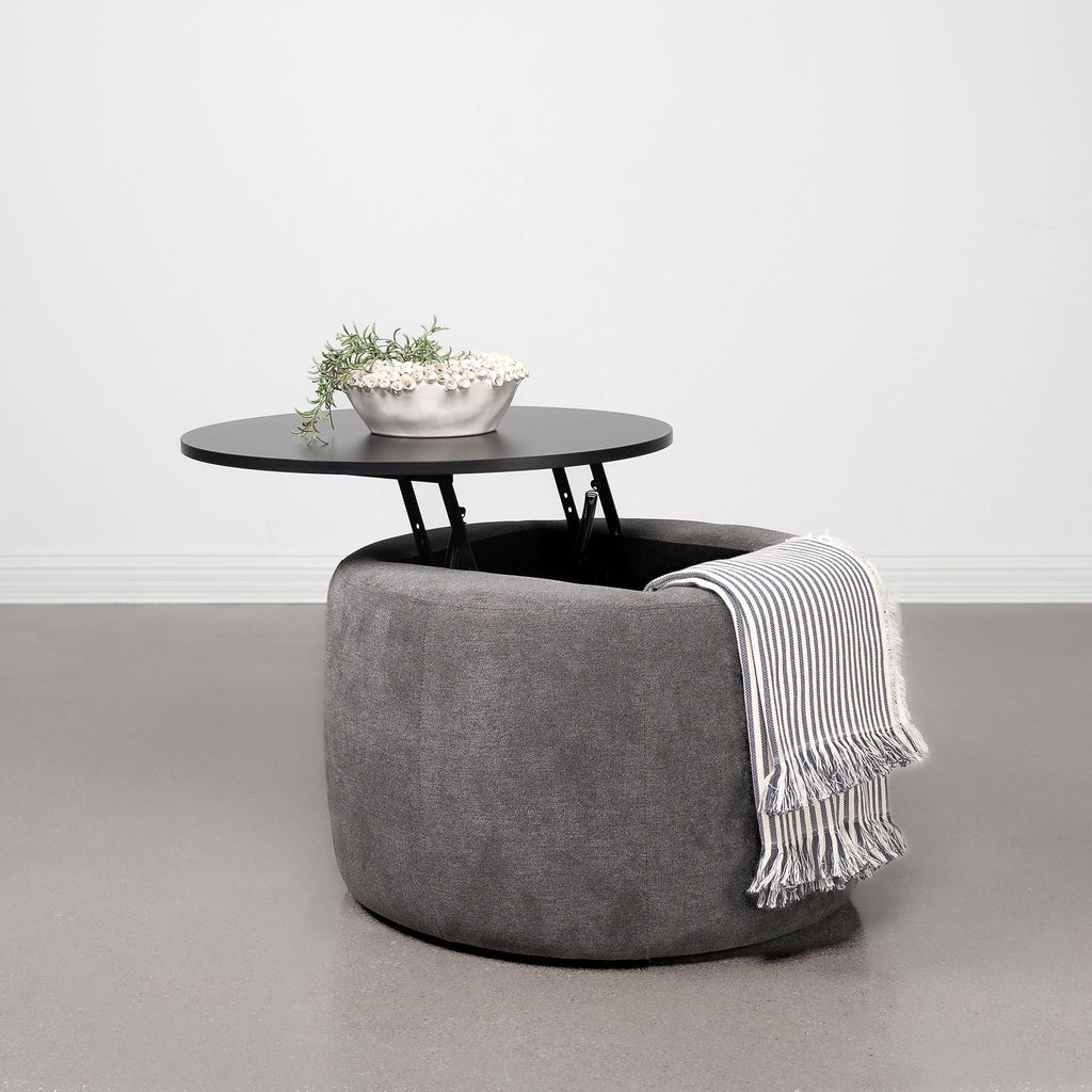 • Engineered wood lift top with a smooth black finish adds a modern touch