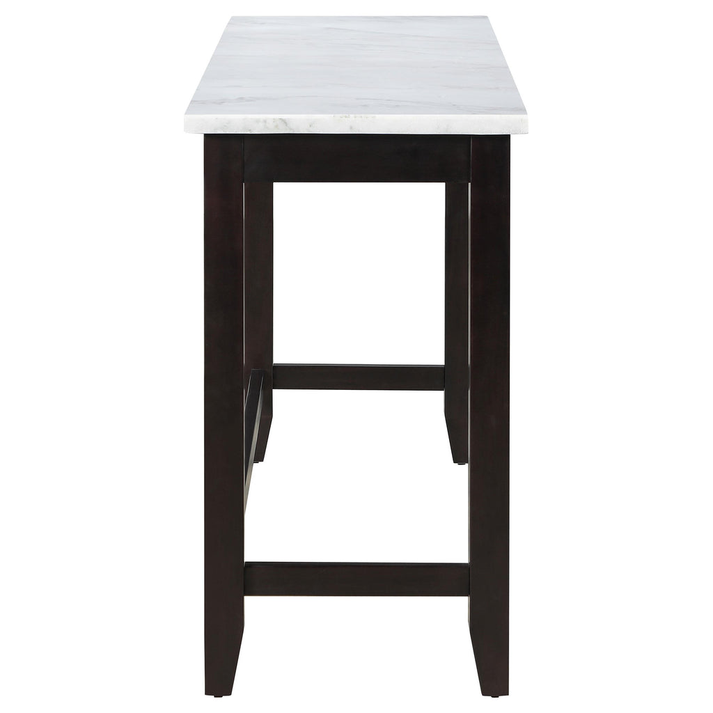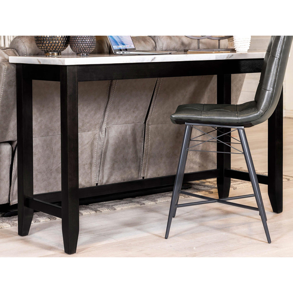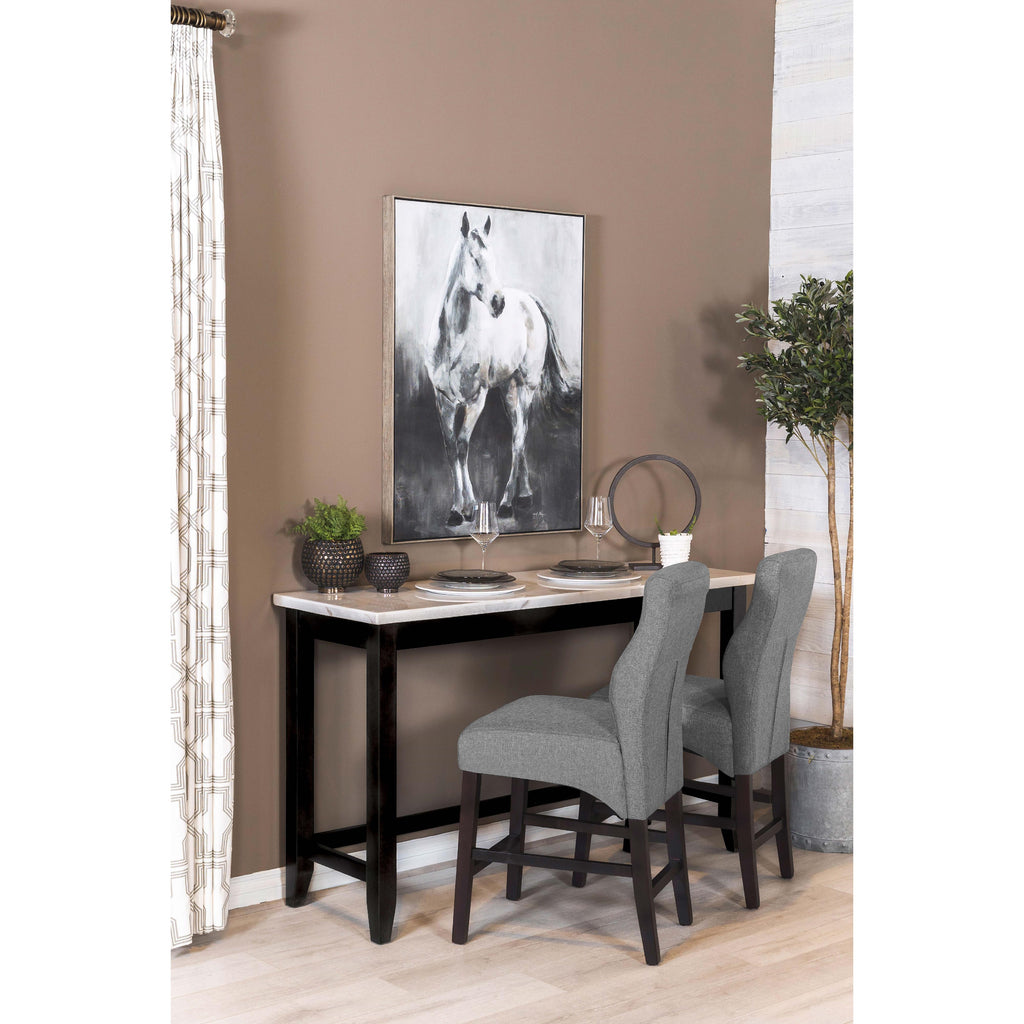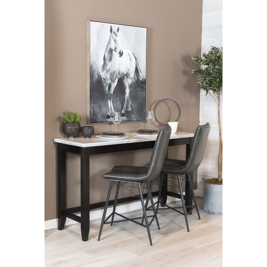 • An open trestle base allows room for two to three counter height stools