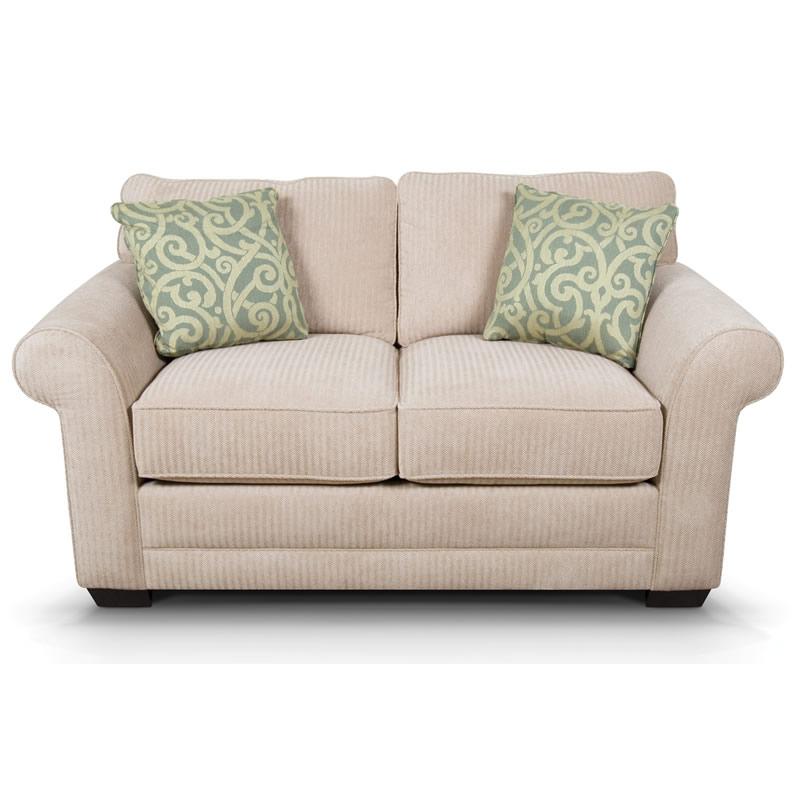 Coil cushions are optional at a small upcharge; Two 20" throw pillows (with fringe option) come standard; Legs are 6" x 6" x 2.5" H. pyramid bolt-on with dark brown finished wood; Matching welt is standard; Two cushion loveseats