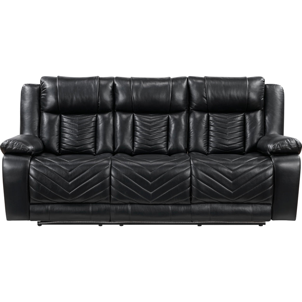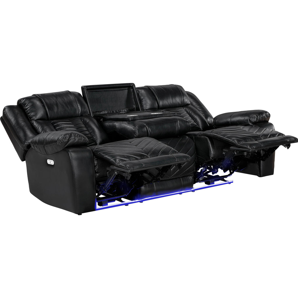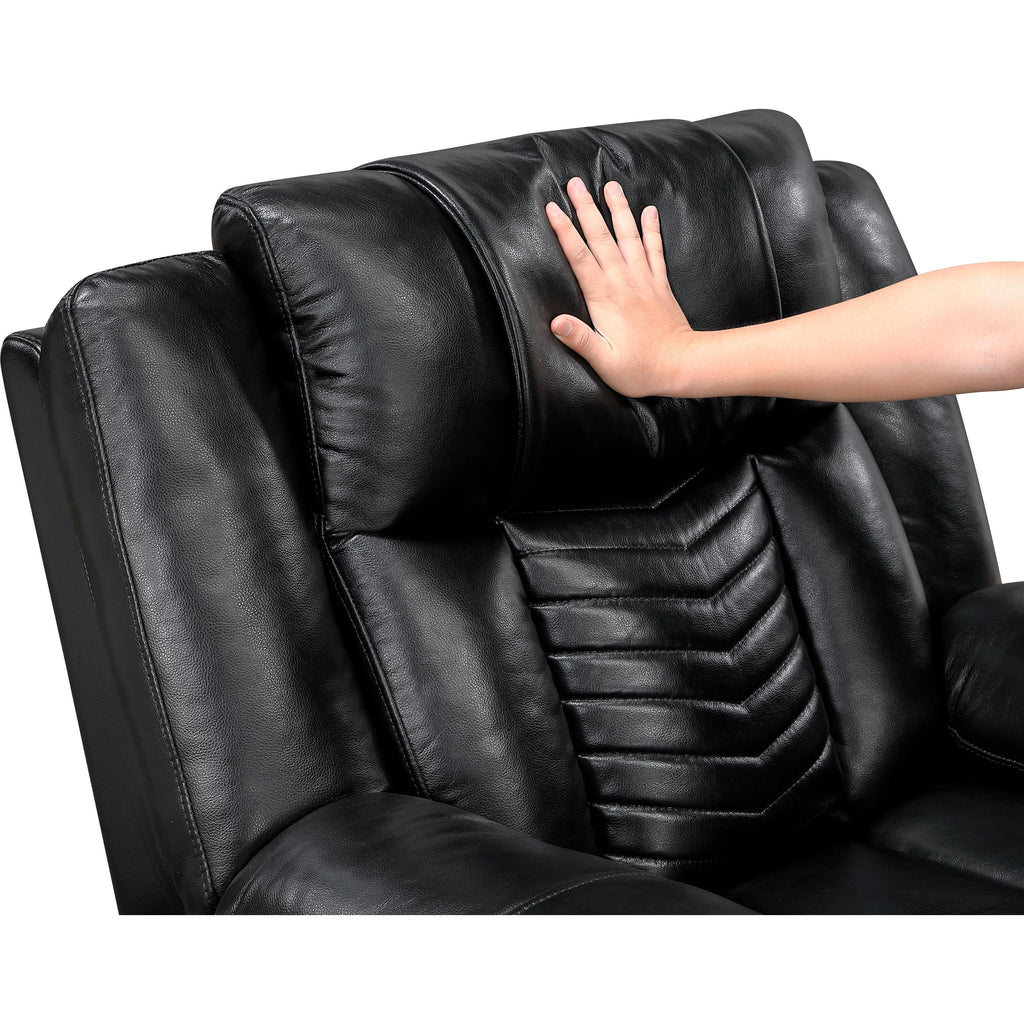 • Drop-down center table with 2 cup holders, a magazine pocket, and a wireless charger