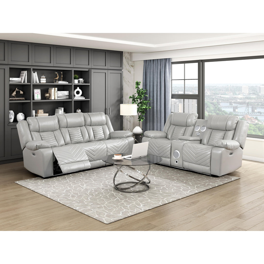 • Drop-down center table with 2 cup holders, a magazine pocket, and a wireless charger