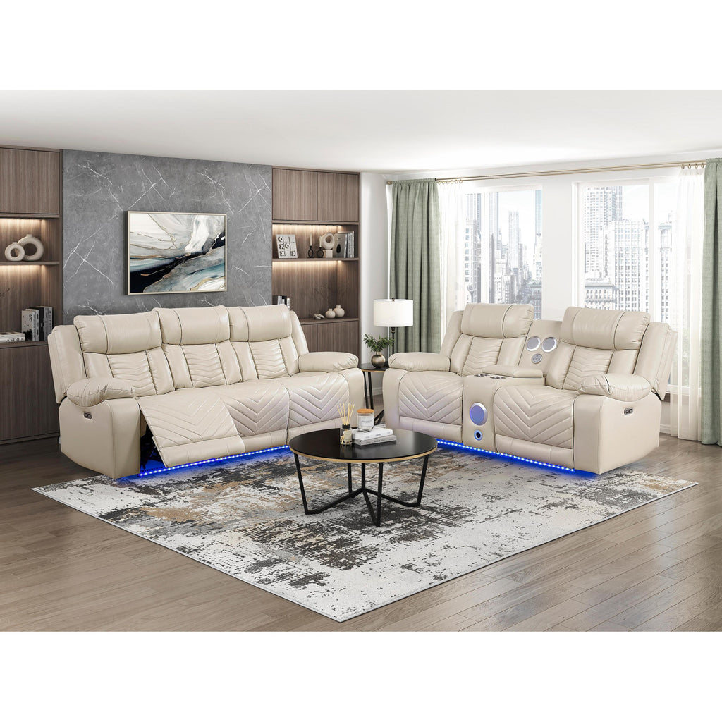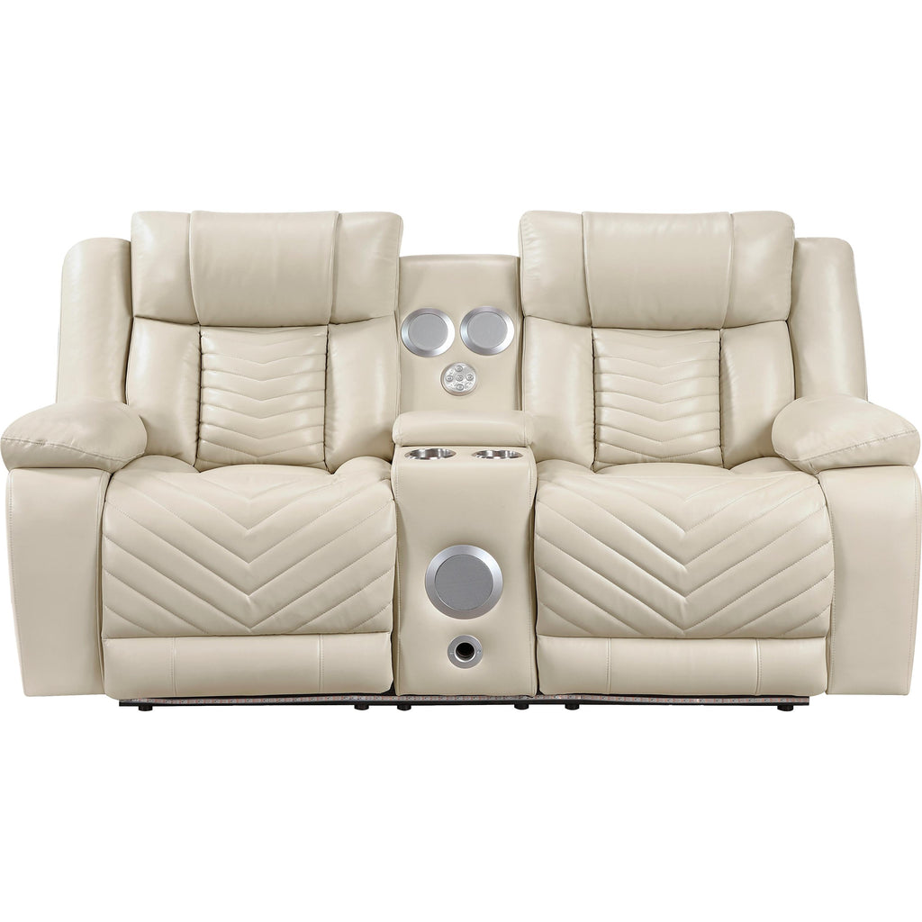 • Center console with 2 cup holders, hidden storage, and wireless speakers