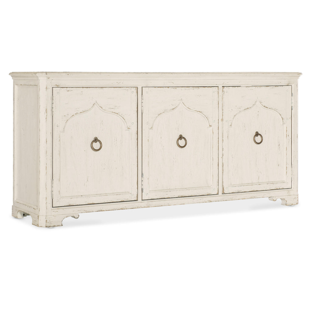 • One self-closing tray drawer and one adjustable shelf behind center door