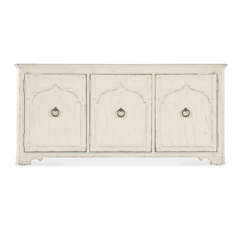 • Finish: The Americana Daisy finish is a time worn white finish on cathedral oak veneers representing the natural wear one might expect of pieces passed down through the family over time revealing the rich oak character beneath. The Honey finish is on the inside. Metal alloy ring pulls in an antique bronze finish.