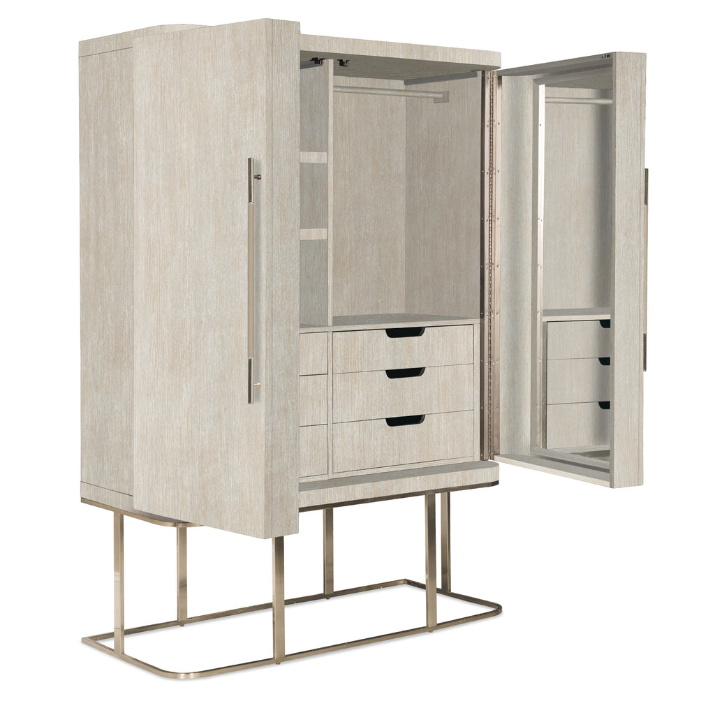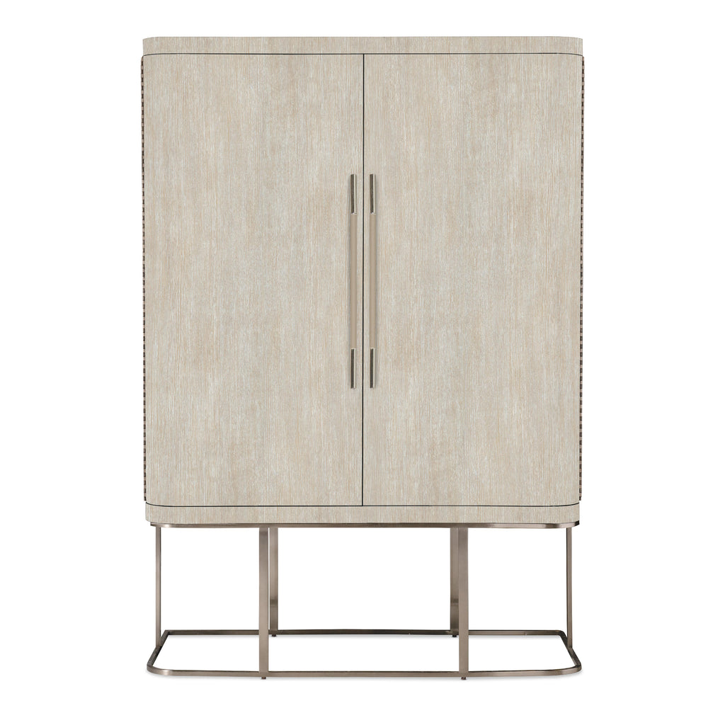 • Finish: Diamond finish: flat cut quartered oak veneers with wire-brush detailing in a light finish with crystal-like alabaster and pewter hues delivering a soft sophistication. Brushed metal in warm pewter finish. Bar pulls wrapped in leather.