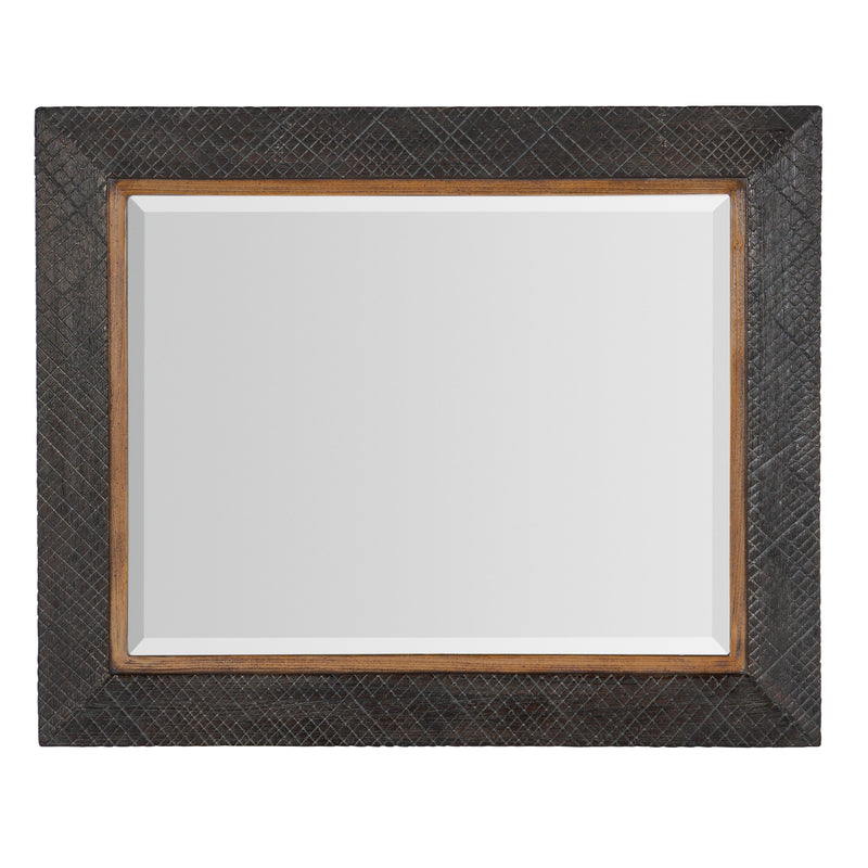 • Finish: Furrowed Bark, a charcoal finish with a crosshatch texture, is the main finish with a contrasting trim in Vintage Natural around the mirror