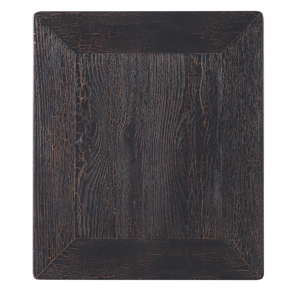• Finish: Charred Timber: inspired by the restorative beauty of a fire-ravaged forest. Distressing includes worm holes, rasping, gauging, plane shock, hand plane, drawknife, wire brush and screw head. Dark brushed bronze metal bar pull.