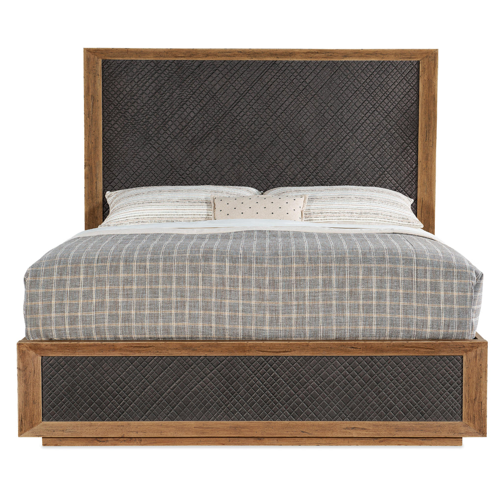 • Finish: Vintage Natural: a warm, rustic, organic finish over hickory veneers. Furrowed Bark, a charcoal finish with a crosshatch texture, is the featured finish on the headboard and footboard. Distressing includes chopping, rock, drawknife, gauging, chain distressing and wire brush.