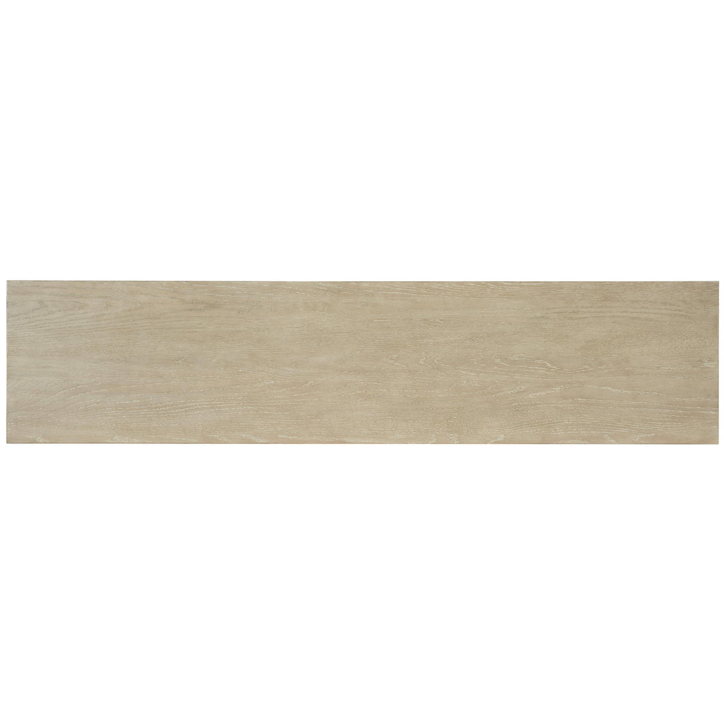 • Finish: Terrain: a soft, taupe finish on oak veneers. Distressing includes dry brushing. Champagne colored tab pull hardware.