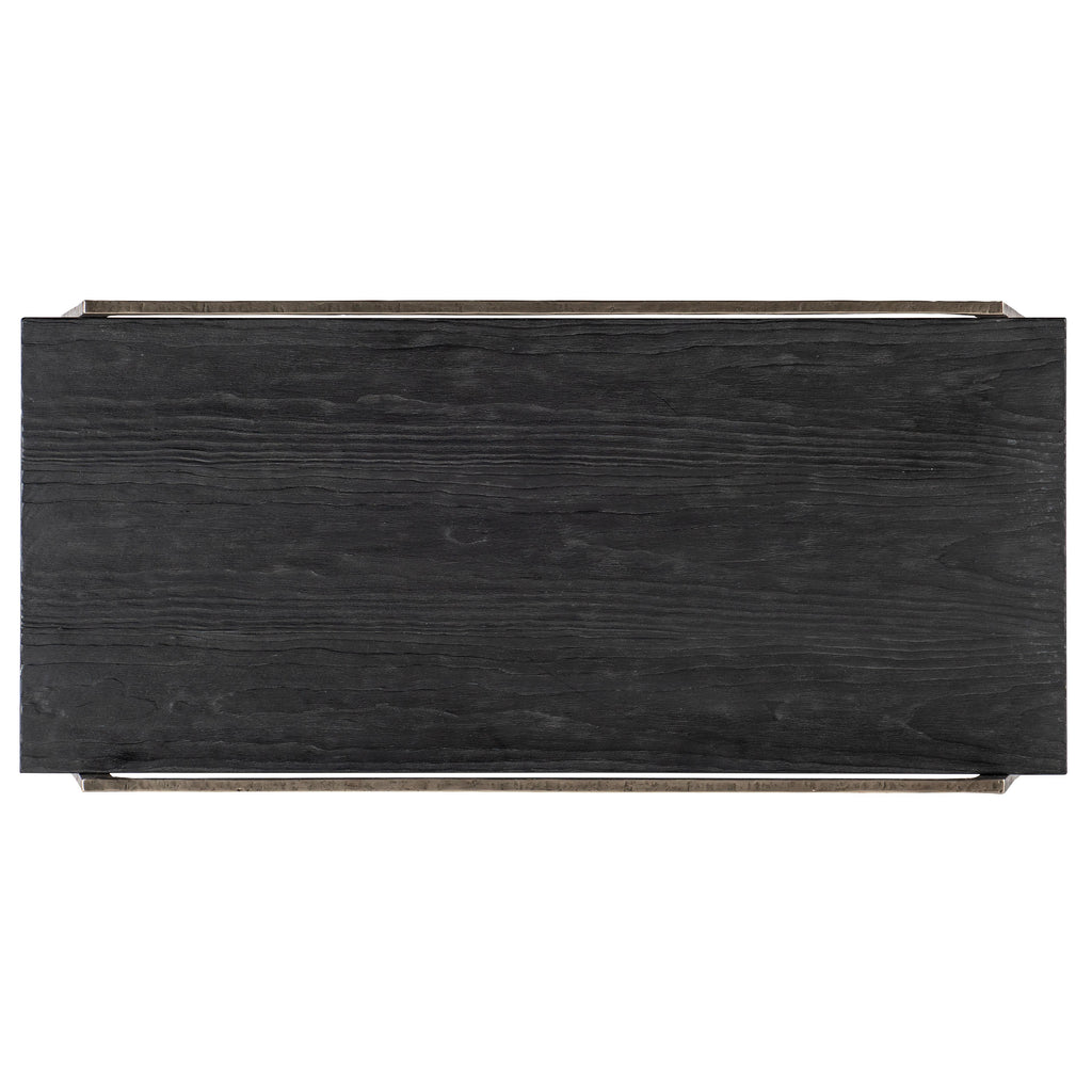 • Finish: The Charred Black finish is achieved through Shou Sugi Ban, a Japanese technique that creates a look resembling burnt wood. Unique hand-hammered metal accents in a forged pewter finish add to the contemporary style. Distressing includes sandblasting, wirebrushing, wormholes, and rock distressing.