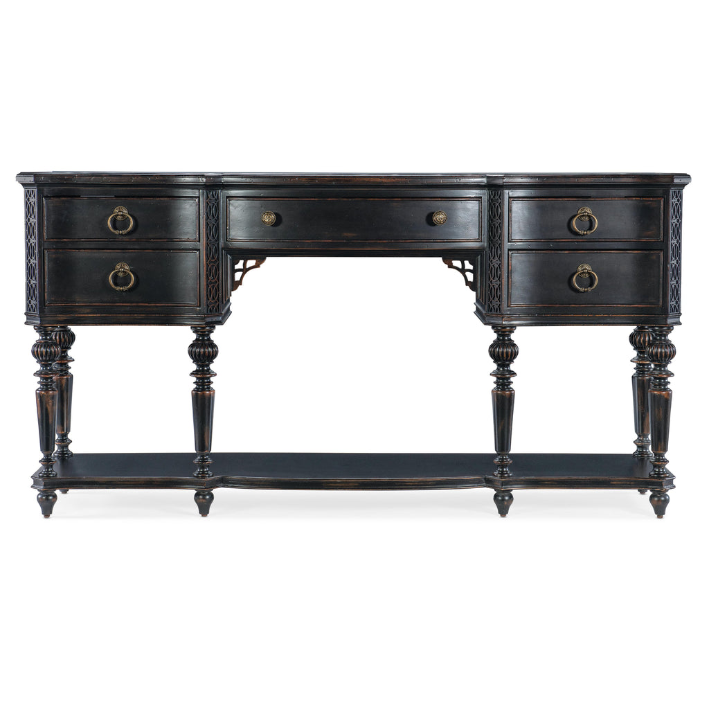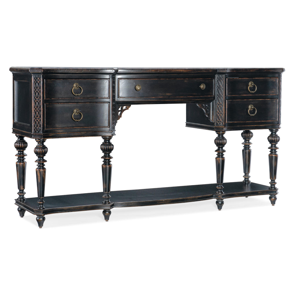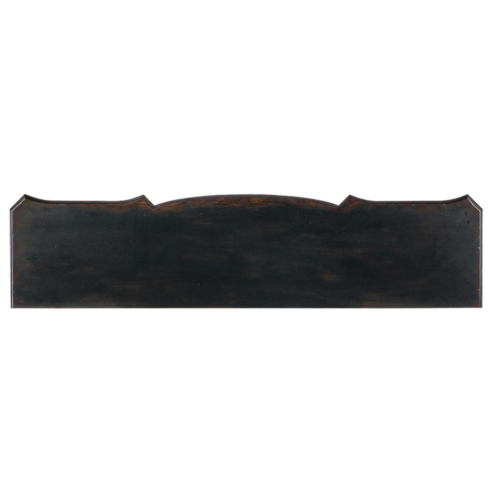• Scroll bracket accents below center drawer