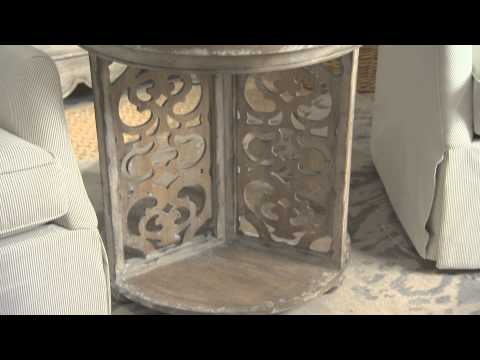 • Finish: A combination of Caramel Froth and Paris Vintage. Pecky pecan veneers are warmed by a soft amber color and a touch of aged white paint to highlight distinctive grains and moldings in the Caramel Froth finish. The Paris Vintage finish is a distressed vintage white with fretwork overlay on select pieces. Distressing includes scraping lines, sloping lines and rasping.