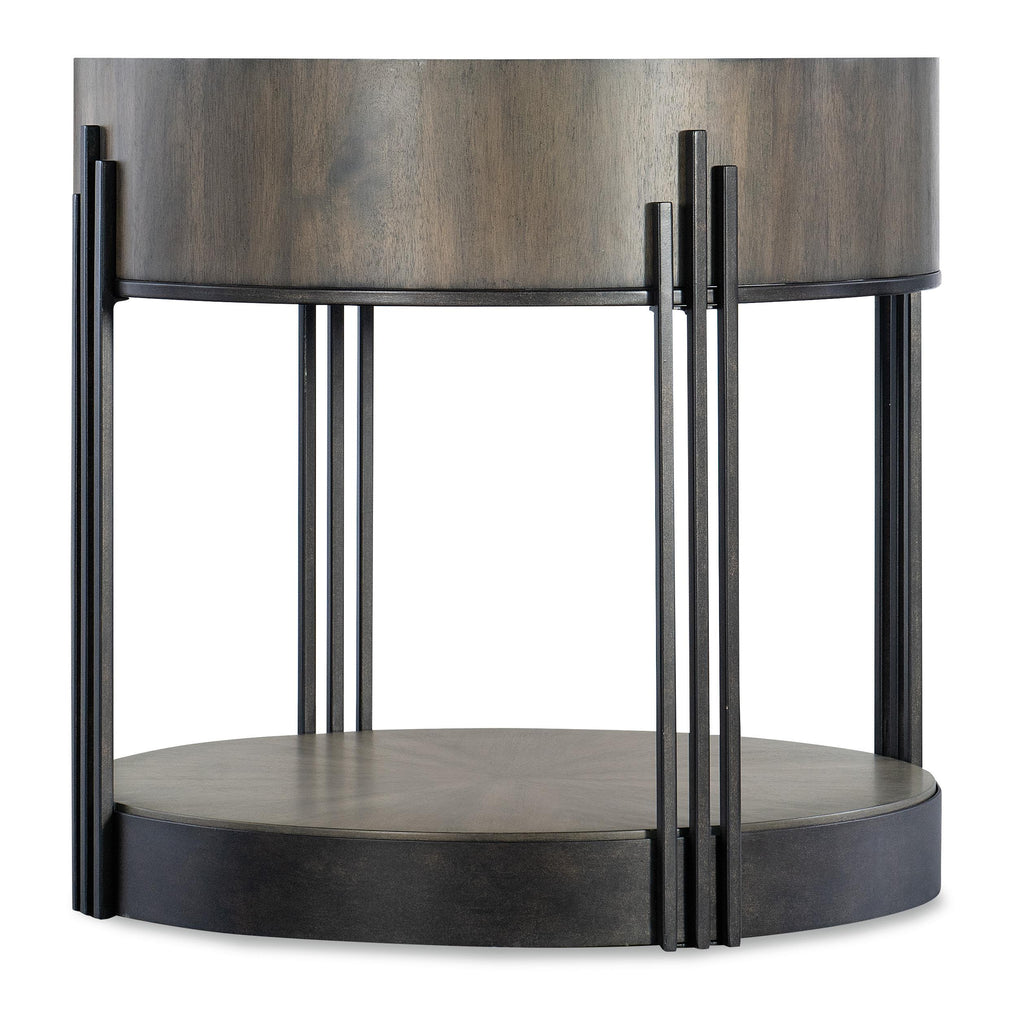 • Finish: Dark natural wood finish with dark bronze metal banding and legs