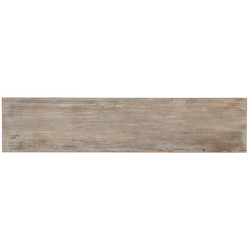 • Finish: Medium wood tone with cream glaze and heavy distressing. Antique bronze-colored bar pull hardware with cream glaze.