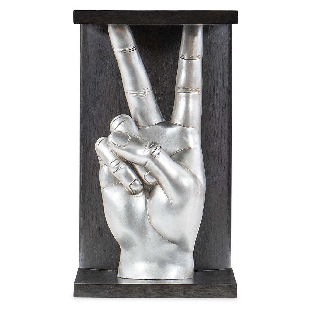 • Finish: Black wood finish on exterior with silver finished peace sign hand