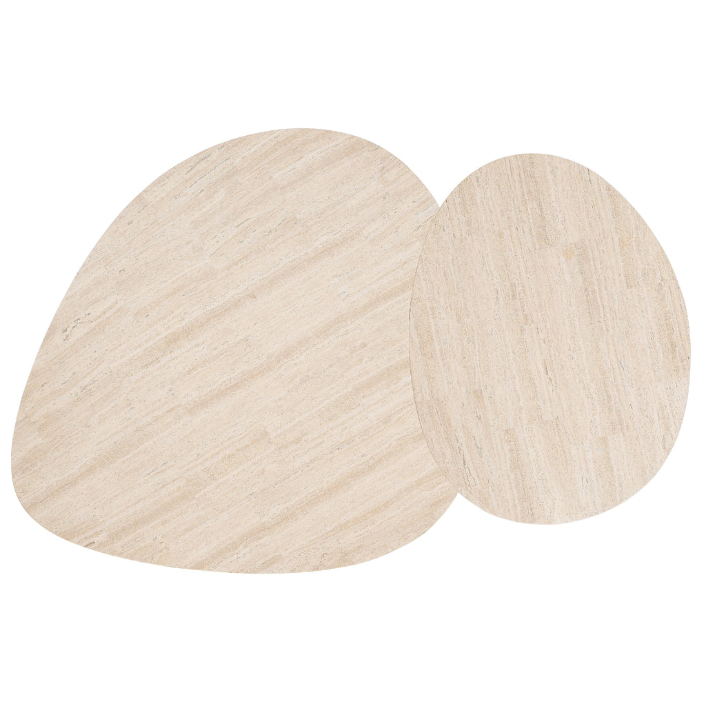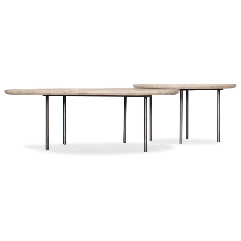 • Finish: Charcoal gray metal legs with white travertine stone parquet tops