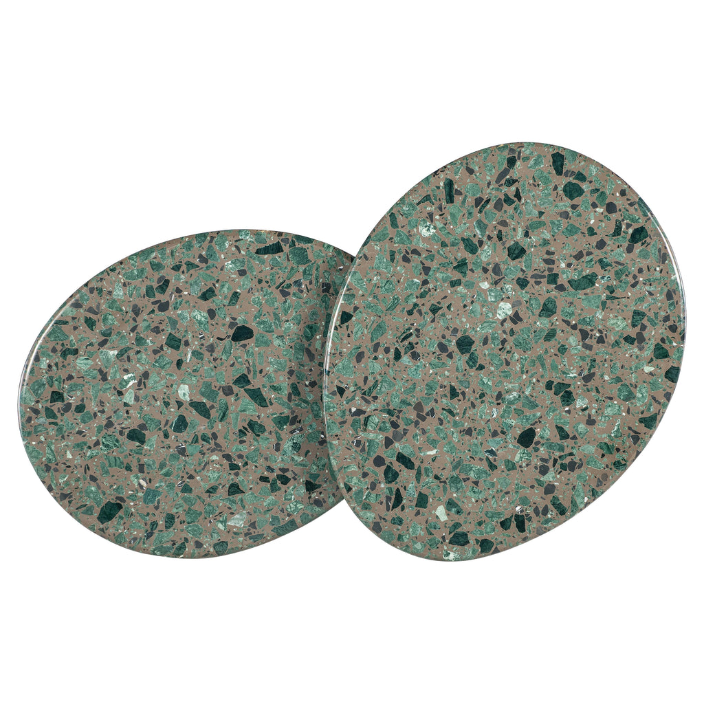 • Finish: Textured pewter metal base with stone tops with green, black and charcoal bits