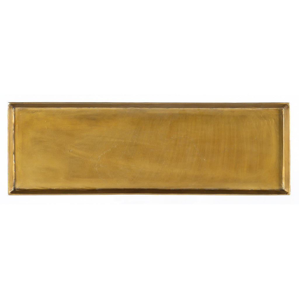 • Finish: Gray metal base with gold tray top and gold shelf