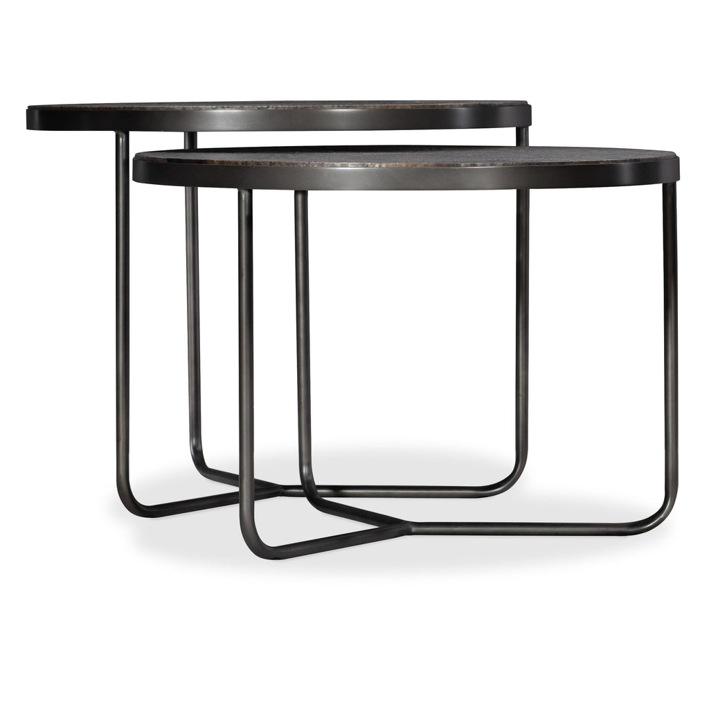 • Finish: Black and gray coloring look on tops are achieved by an oil and fire technique. Charcoal gray metal bases.