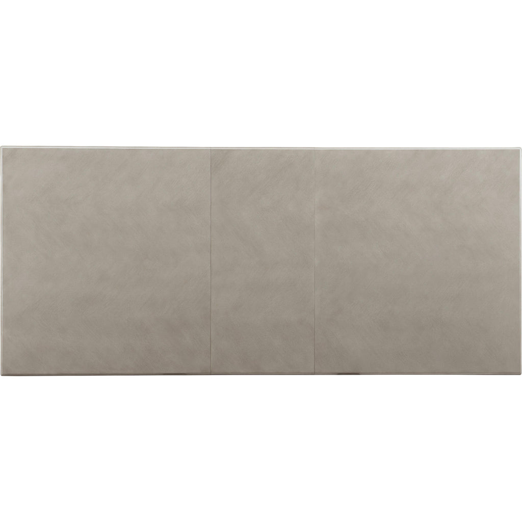 • Finish: A serene gray beige finish applied to lightly sand-blasted walnut veneer for an organic and textured look. Champagne silver finish on the metal elements and hardware. Custom-designed knob hardware in a champagne silver finish. Distressing includes wire brushing on wood surfaces and texturing on metal.