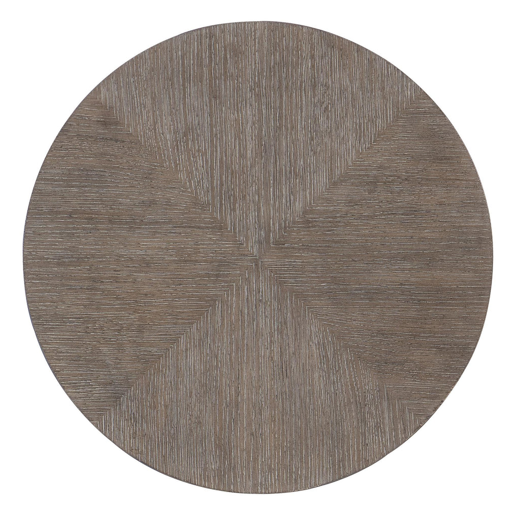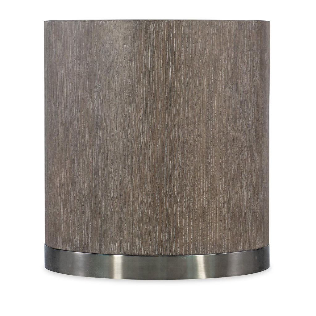 • Finish: Mink finish: flat cut quartered oak veneers with wire-brush detailing in a dark, earthy brown with notes of black delivering a timeless aesthetic. Warm pewter metal wrapped band on base.
