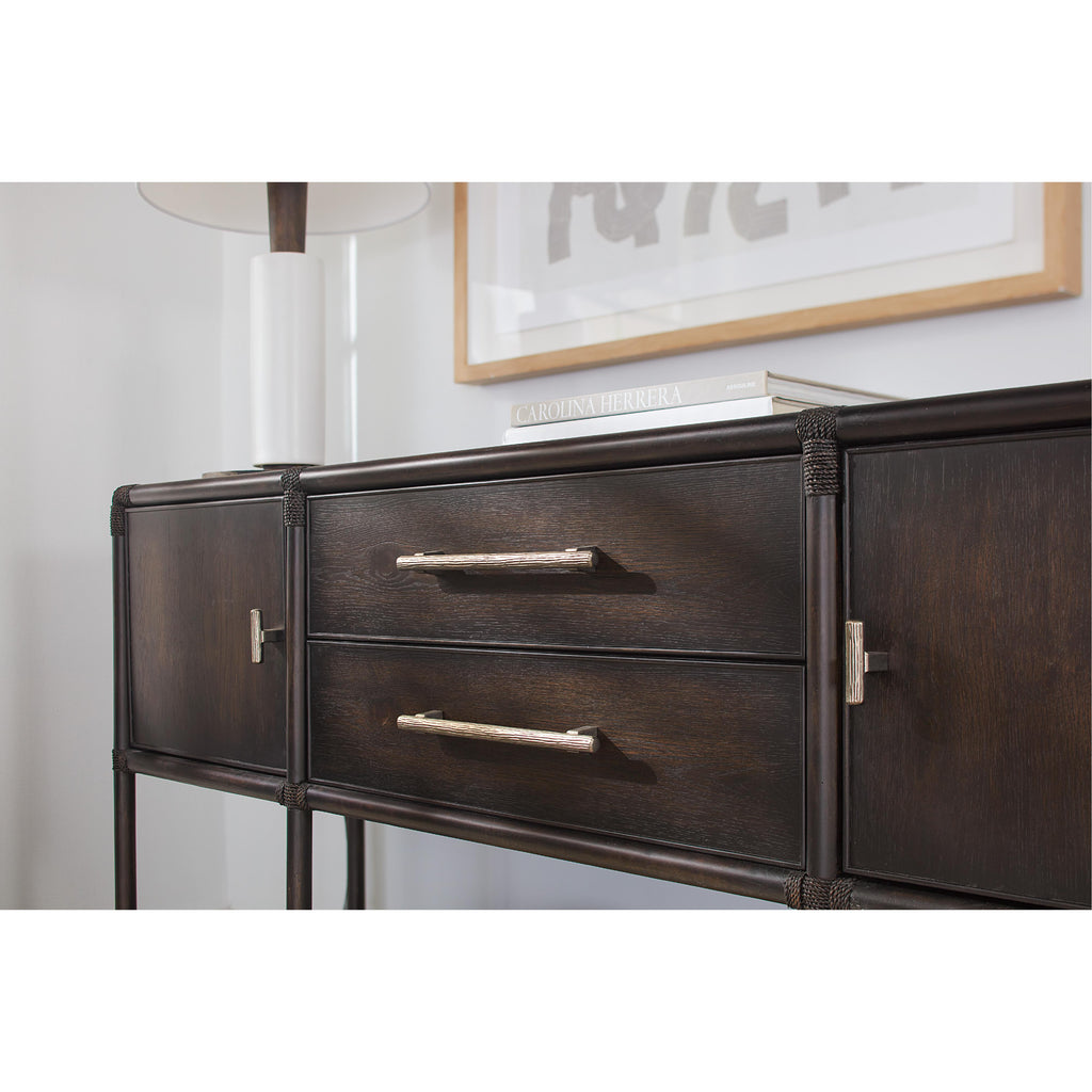 • Finish: Black Sand: Transparent by design to showcase the unique grain patterns of the veneer, Black Sand was inspired by the black silk sands found on the shorelines of exotic beaches of Maui and Tahiti. Soft pewter bar pulls and "T" pulls.