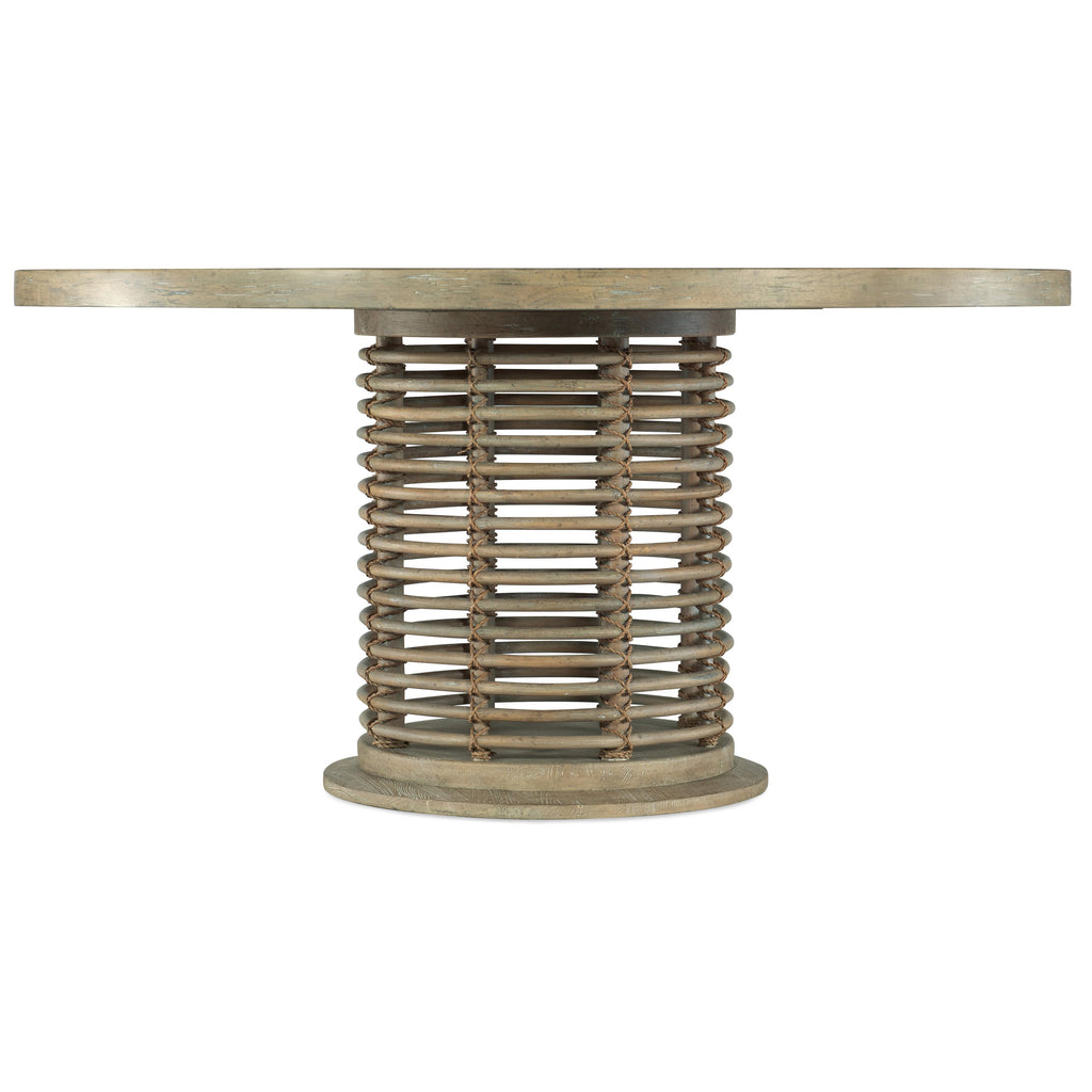 • Primary Materials: Cane, Resin, Rope, Pecan Veneers with Solid-Wood Edge Top