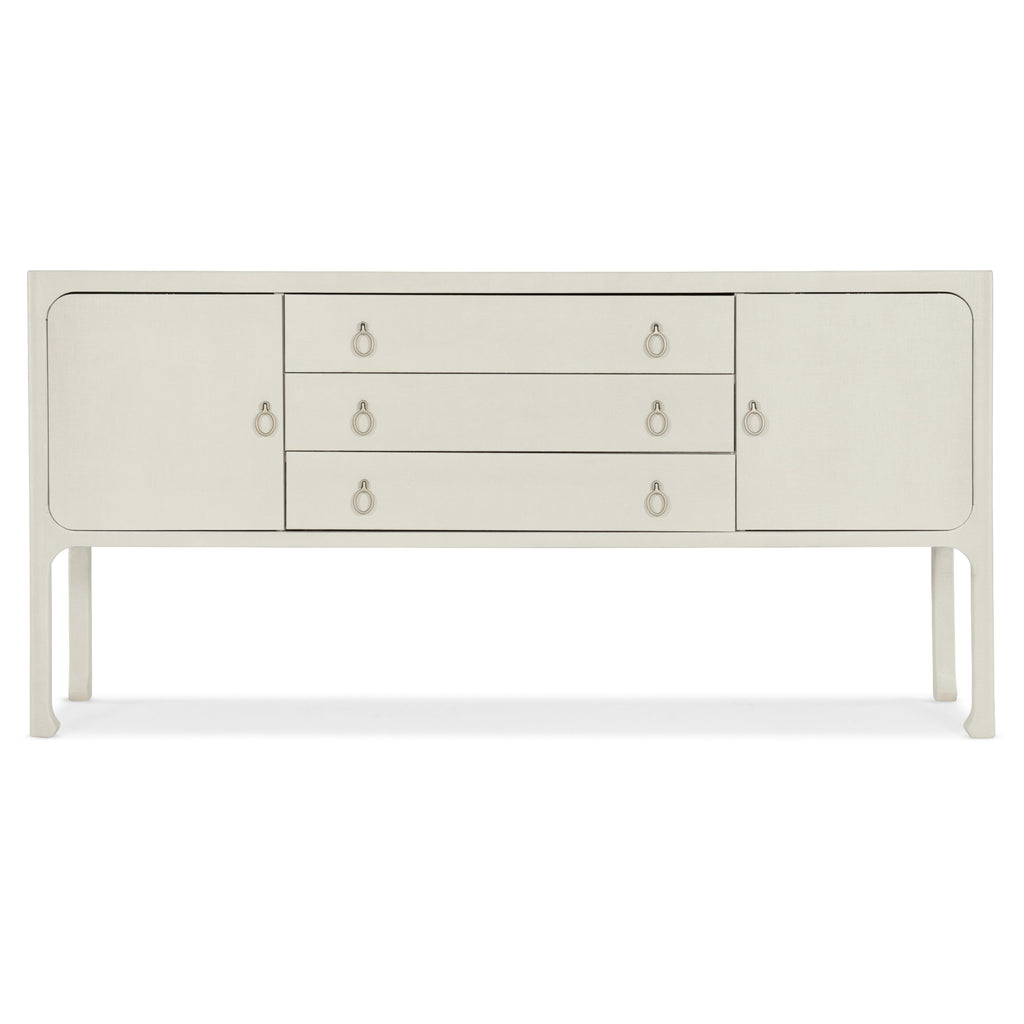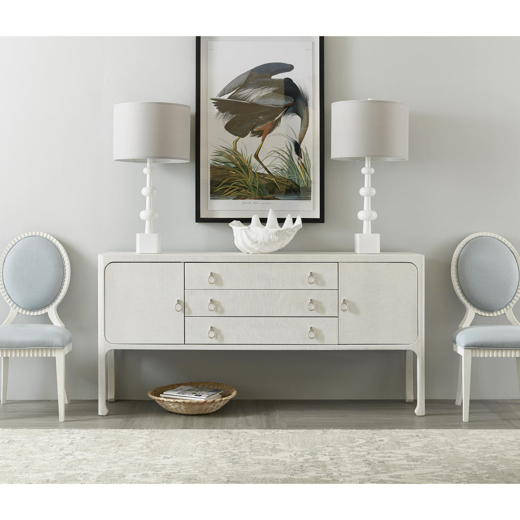 • Finish: Sand Dollar: White lacquered grasscloth. Light champagne decorative pulls.