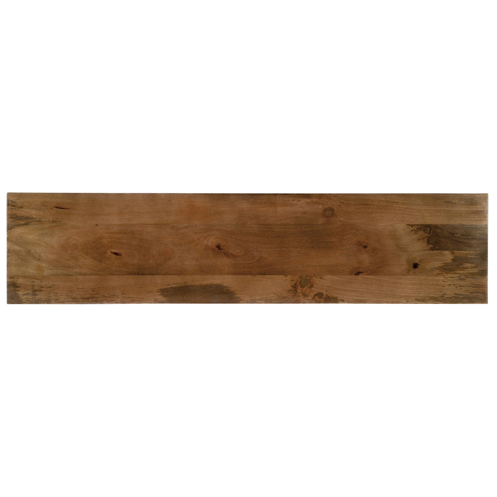 • Finish: Rustic medium and dark wood finish. Dark bronze metal bar pull and metal base.
