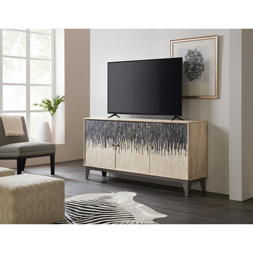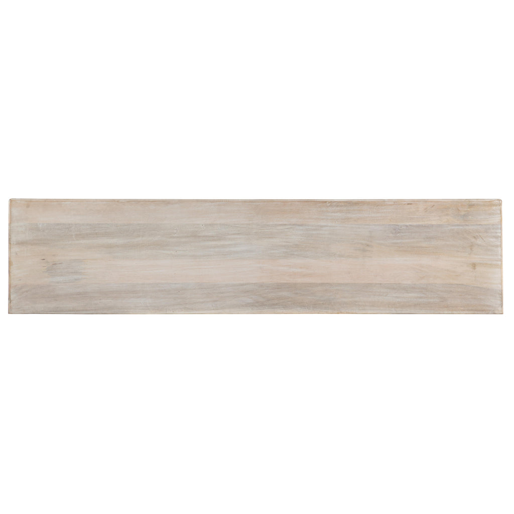 • Finish: Rustic light wood finish on outside of case. Contrasting gray door fronts. Matte zinc metal knob hardware and base. Distressing includes wire brushing.