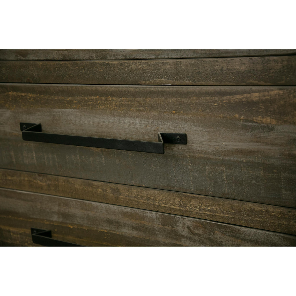 • Six-step, hand-painted finish in a gray and brown color scheme for a "reclaimed wood" look