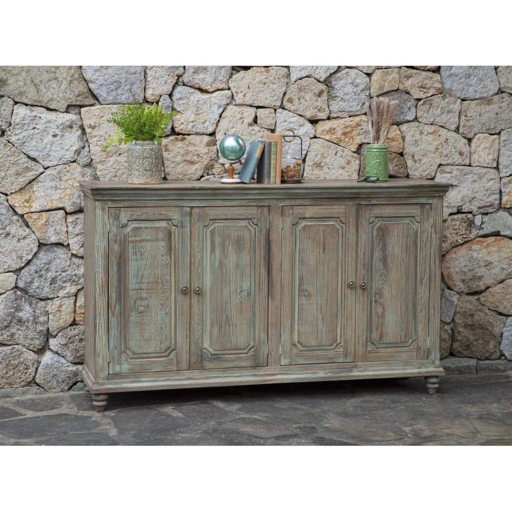 • Multi-step, lacquer aged green finish protects the intrinsically wire-brushed wood